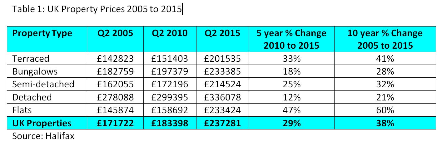 When we compared the national picture with the Crawley property market, however, we showed that the opposite trend had occurred. In Crawley, over the last 10 years, the price of houses has in fact outperformed flats. We also showed that the average price of flats & houses had diverged over the same period. Here’s the graph again, showing average prices for flats & houses in Crawley from 2005 to 2015.