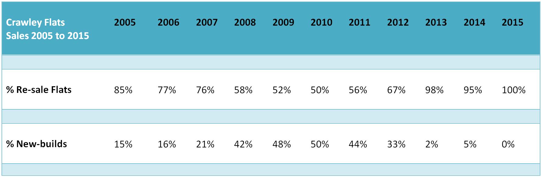 Table2: Crawley Flats: Sales Volumes 2005 to 2015